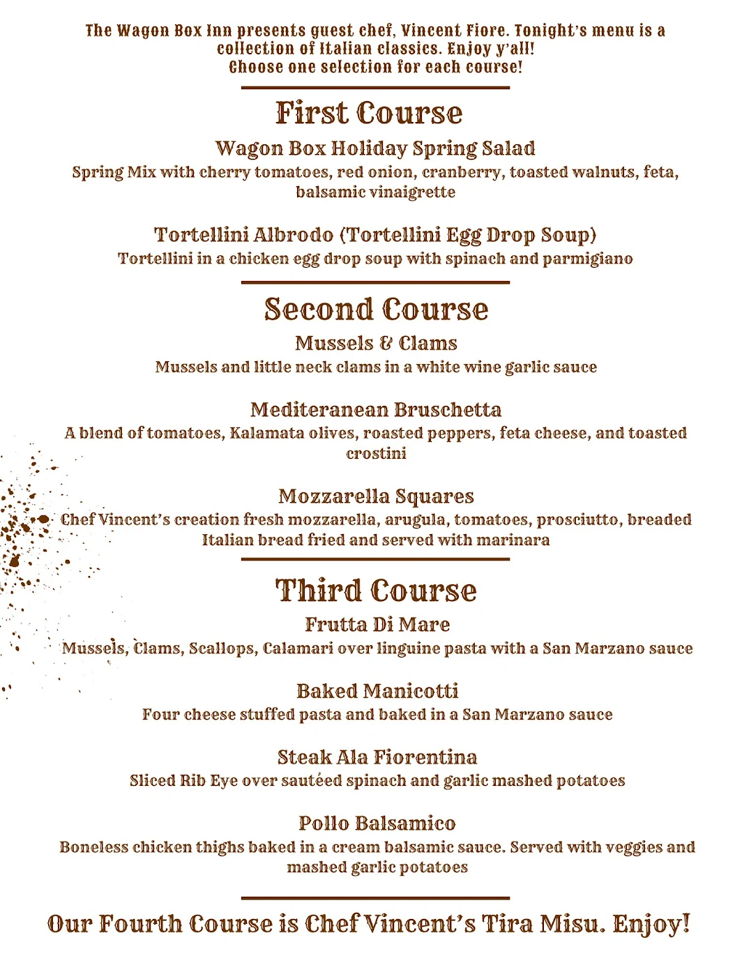 Buon Natale is an Italian Christmas Dinner hosted by the Wagon Box and guest chef, Vincent Fiore.